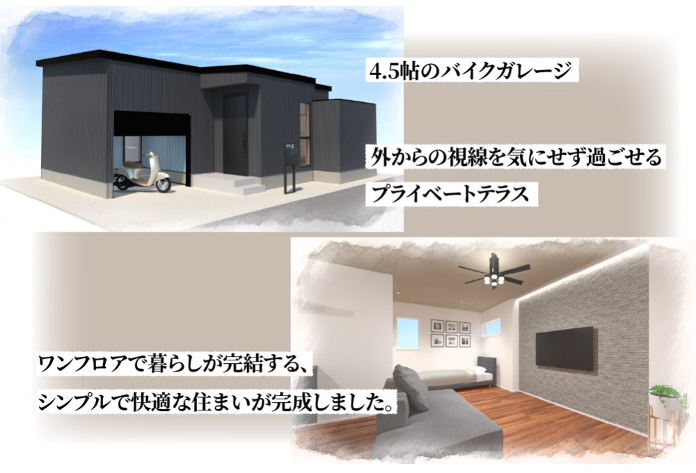 | ワンフロアで暮らしが完結する、シンプルで快適な住まいが完成しました。 | ||||||||||||||||||||