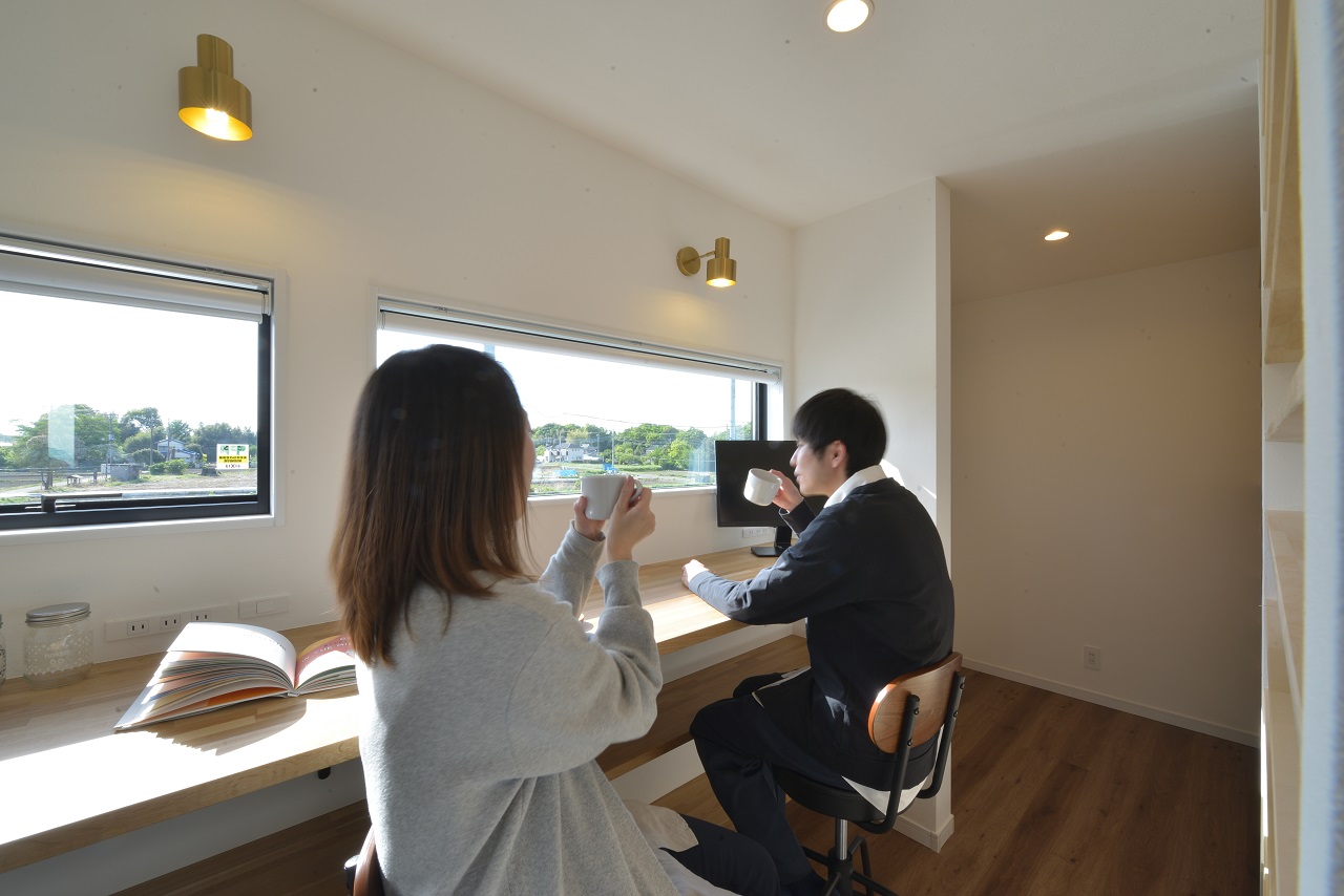 外を眺めながら本を読んだりパソコン作業ができるようにしました。