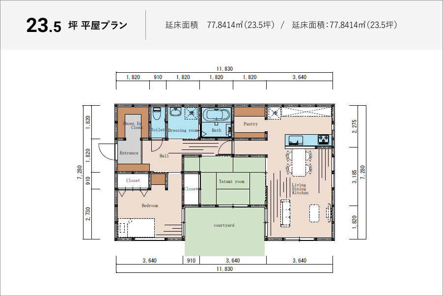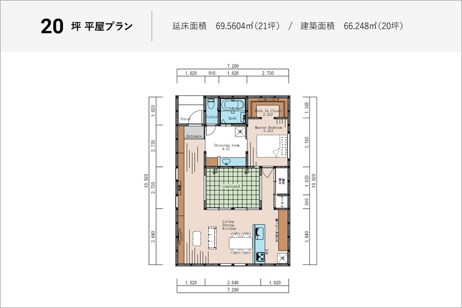 2階建てのお家とは異なり、工事に伴う足場組や塗装工事等のコストを抑えることができます。また、全てが1階で完結するため、水回りのメンテナンス等が圧倒的にラクになります。